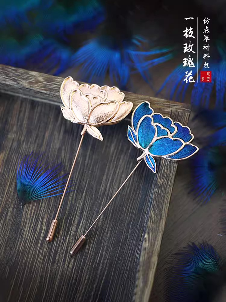 「非遗」仿点翠玫瑰花胸针